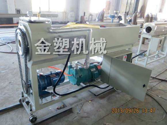 該機(jī)是在預(yù)應(yīng)力塑料波紋管(竹節(jié)型)設(shè)備基礎(chǔ)上開發(fā)新型替代設(shè)備產(chǎn)品外形呈螺旋波紋形狀。該機(jī)具有設(shè)備造價(jià)低,結(jié)構(gòu)緊湊,工藝簡(jiǎn)單,操作方便,一機(jī)兩用(圓扁管都可生產(chǎn))等特點(diǎn)。全套設(shè)備由SJ系列單螺桿擠出→擠出模具→螺旋成型模具→真空噴淋水箱→牽引機(jī)→鋸割機(jī)→反轉(zhuǎn)平臺(tái)組成 。